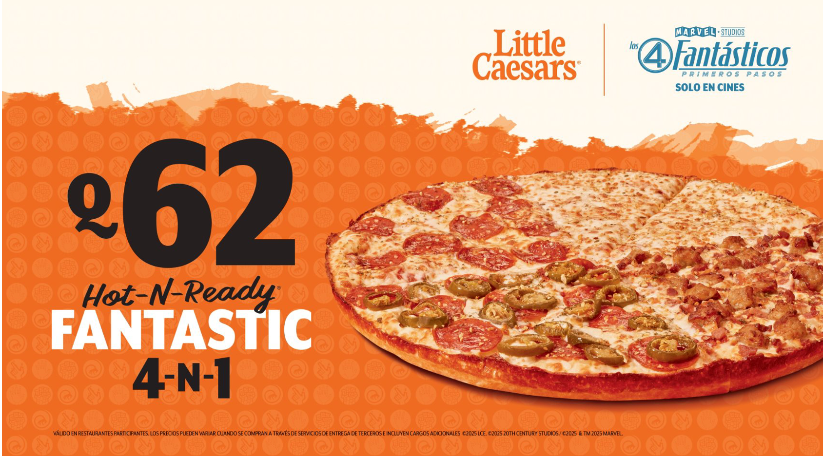 Little Caesars collaborated with Marvel Studios to promote their film, The Fantastic Four: First Steps! The campaign was brought to life across all marketing touch points and offered a unique LTO product for guests. Inspired by Marvel's iconic first family, the Fantastic Four-N-One Pizza delivered four bold topping combinations in one large pie- perfect for families, friend groups, and anyone looking to enjoy a little bit of everything. This co-branded promotion launched across the US, Canada, Mexico and LAC markets.