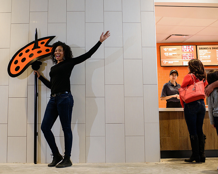 Four distinct concession stand designs were created that balances the decor of the arena with the Little Caesars store design. A pizza spear selfie station, where you can pose as Caesar, makes for a huge draw of visitors.